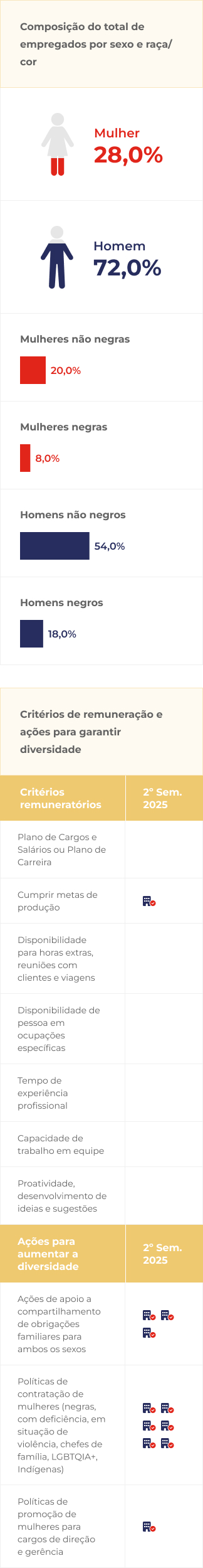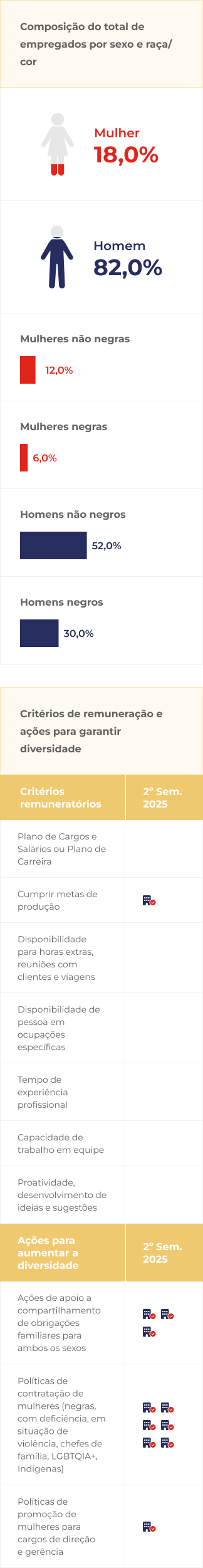 O percentual apontado no quadrante da remuneração média diz respeito aos adicionais pagos aos funcionários, como Adicional Noturno (funcionários do turno C), Adicional por Tempo de Serviço e horas extras, realizadas pelas equipes.